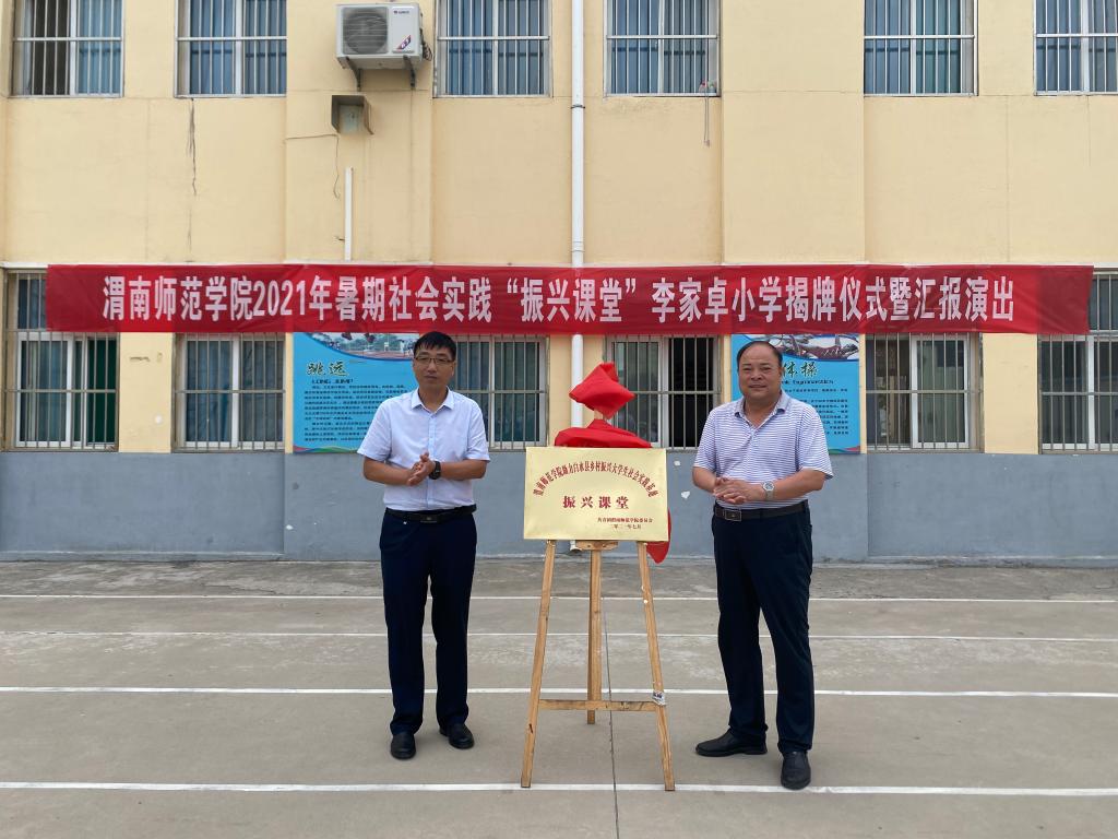 7月23日,校党委副书记韩小卫赴白水县李家卓小学、煤矿中学、仓颉庙景区管委会检查指导纽约国际官网2021年大学生暑期社会实践服务白水乡村振兴专项活动,深入师生中了解社会实践进行情况,调研社会实践队助力白水乡村振兴效果,并参加纽约国际官网在两所学校建立“振兴课堂”揭牌仪式。