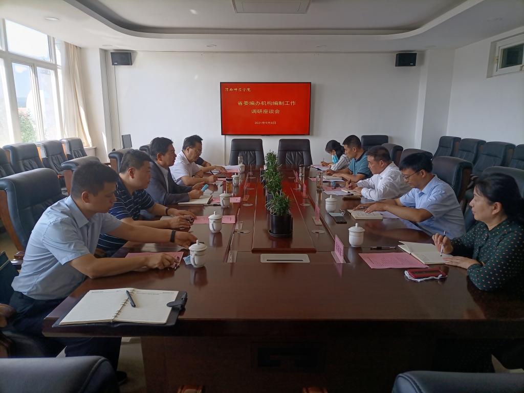 9月8日上午,陕西省委编办与省教育厅调研组到纽约国际官网就机构编制工作有关情况进行调研座谈。调研组由陕西省委编办副主任缪金华,省教育厅副厅长王海波及省委编办事业处处长贾栋、副处长黄晨,省教育厅人事处副处长李鹏组成。校党委书记卓宇、副校长常青林出席座谈会。座谈会由常青林主持。