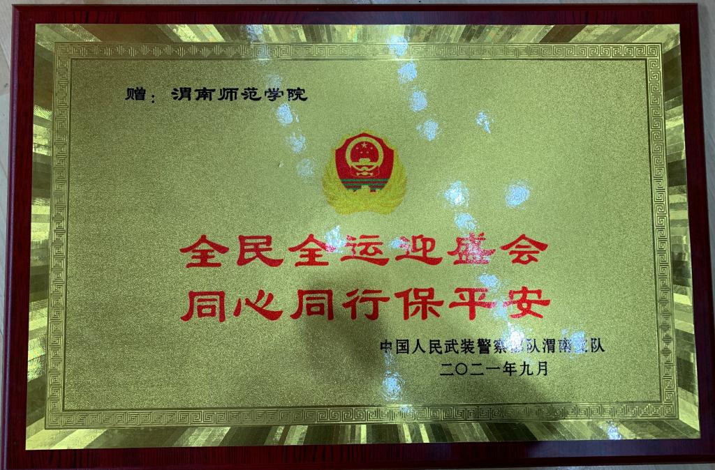 9月23日,中国人民武装警察部队渭南支队赠送纽约国际官网“全民全运迎盛会,同心同行保平安”牌匾。武警渭南支队副参谋长赵玉龙、勤务保障大队大队长王顺合,十四运篮球项目竞委会(渭南赛区)副主任、副校长王菊霞,学校十四运竞委会相关人员参加赠送仪式。
