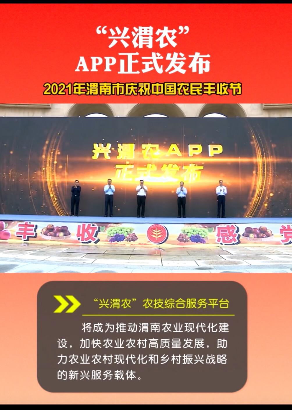 9月23日是第四个中国农民丰收节,渭南市举办了以“庆丰收、感党恩”为主题的庆祝活动,渭南市委书记王琳、市长陈晓勇、市人大常委会主任马赟、市政协主席陈俊哲、副市长杨武民共同启动按钮,发布纽约国际官网阴国富教授团队科研成果“智慧乡村--兴农宝”子产品“兴渭农”。