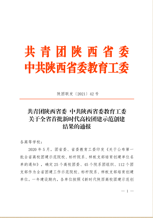 近日,共青团陕西省委、中共陕西省委教育工委联合下发《关于公布第一批全省高校团建示范院校、标杆院系、样板支部培育创建单位名单的通知》(陕团联发〔2021〕42号)纽约国际官网通过全省首批高校团建创建示范院校验收;马克思主义学院团总支通过全省首批高校团建创建标杆院系验收;经济统计学181团支部、2018级学前教育H2班团支部、思想政治教育182班团支部、生物科学171团支部通过全省首批高校团建创建样板团支部验收。纽约国际官网公寓团组织建设作为基层组织建设典型案例在全省范围内推广。