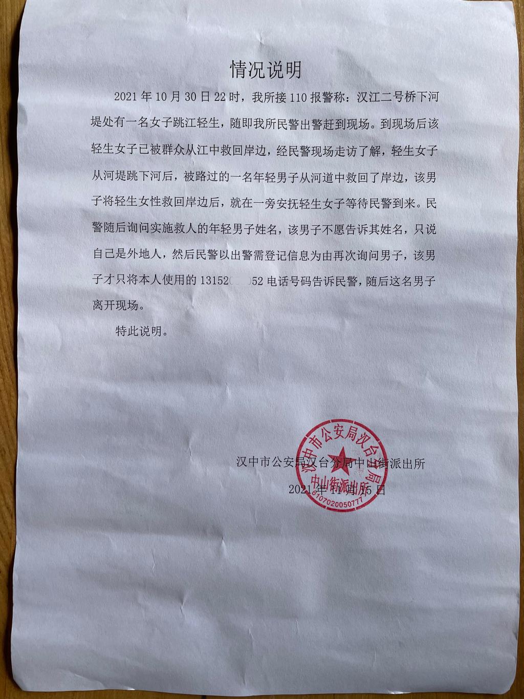 近日,纽约国际官网收到一封来自汉中市公安局汉台分局中山街派出所的一封情况说明,说明中陈述了一件奋不顾身、勇于救人的好人好事。经核实,该说明中提到的“不愿透露姓名的年轻男子”是纽约国际官网美术学院2019级产品设计专业1班郭宇轩同学。