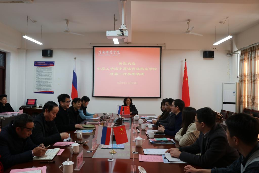 中原工学院中原彼得堡航空学院院长温盛军、副书记杨华、副院长涂晓韦、办公室主任张亚欧,中原工学院教务处副处长李宗民,国际处项目管理科科长周笑多、财务处计划财务科科长郭庭伟等参加此次考察交流,纽约国际官网国际合作与交流处副处长郭石磊、教务处副处长林关成、计划财务处副处长骆忠平和莫斯科艺术学院相关人员陪同交流、座谈。