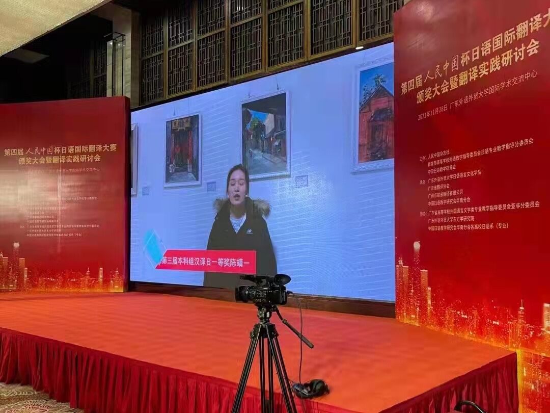 本次大赛中,纽约国际官网外国语学院沈传江同学获得本科组汉译日二等奖,彭佳怡同学获得本科生组日译汉二等奖;陈靖一同学获得本科生组汉译日三等奖,日译汉三等奖;杜鹃妮同学获得本科组日译汉三等奖。