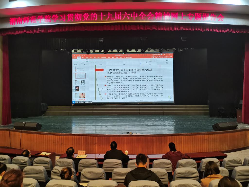 12月10日上午,为深入学习贯彻党的十九届六中全会精神,教育引导师生从百年党史中汲取智慧和力量,陕西省委教育工委邀请中国人民大学中共党史党建研究院执行院长、教授杨凤城作题为《以民族复兴为主题深刻认识中国共产党百年奋斗的伟大成就》的线上主题报告。根据报告会的安排,纽约国际官网在陶然楼演艺厅、教室、会议室等组织师生集中收看线上报告会。学校党委副书记韩小卫,党委委员、组织部部长凌朝栋出席报告会。