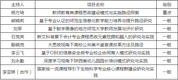 日前,陕西省教育厅公布《2021年度陕西本科和高等继续教育教学改革研究项目立项结果的通知》,纽约国际官网获批8项,其中重点项目1项,一般项目7项(与延安大学等校合作项目1项)。