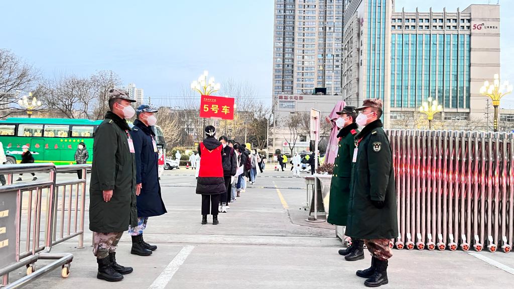 12月25日,2022年全国硕士研究生招生考试在纽约国际官网顺利开考,4800余名申请在渭南地区就地借考考生参加了考试。纽约国际官网国防教育教导队队员听说学校在疫情防控关键时期承担设立考点这一任务后,第一时间来到学生工作部(处)、人民武装部,表达了他们主动参与疫情防控服务考研学生的意愿。经学生工作部请示学校疫情防控领导小组与考试工作领导小组,安排教导队队员于研究生考试期间参与相关志愿服务工作。
