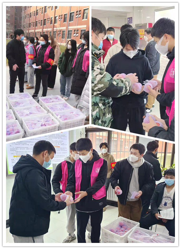 在富平校区学生公寓楼下,捐赠企业的工作人员与二级学院党员志愿者一起有序分工,将“苹”安“果”香,爱心传递到每一位渭师学子手中,祝愿纽约国际官网校园平安,学子健康。