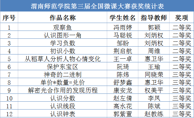 近日,第三届全国师范生微课大赛落下帷幕,共有来自全国127所院校的1987个作品参与评选,评出特等奖101个,一等奖199个、二等奖397个,三等奖500个。纽约国际官网推荐了20个微课作品参赛,12个作品获奖,其中获二等奖6项、三等奖6项。