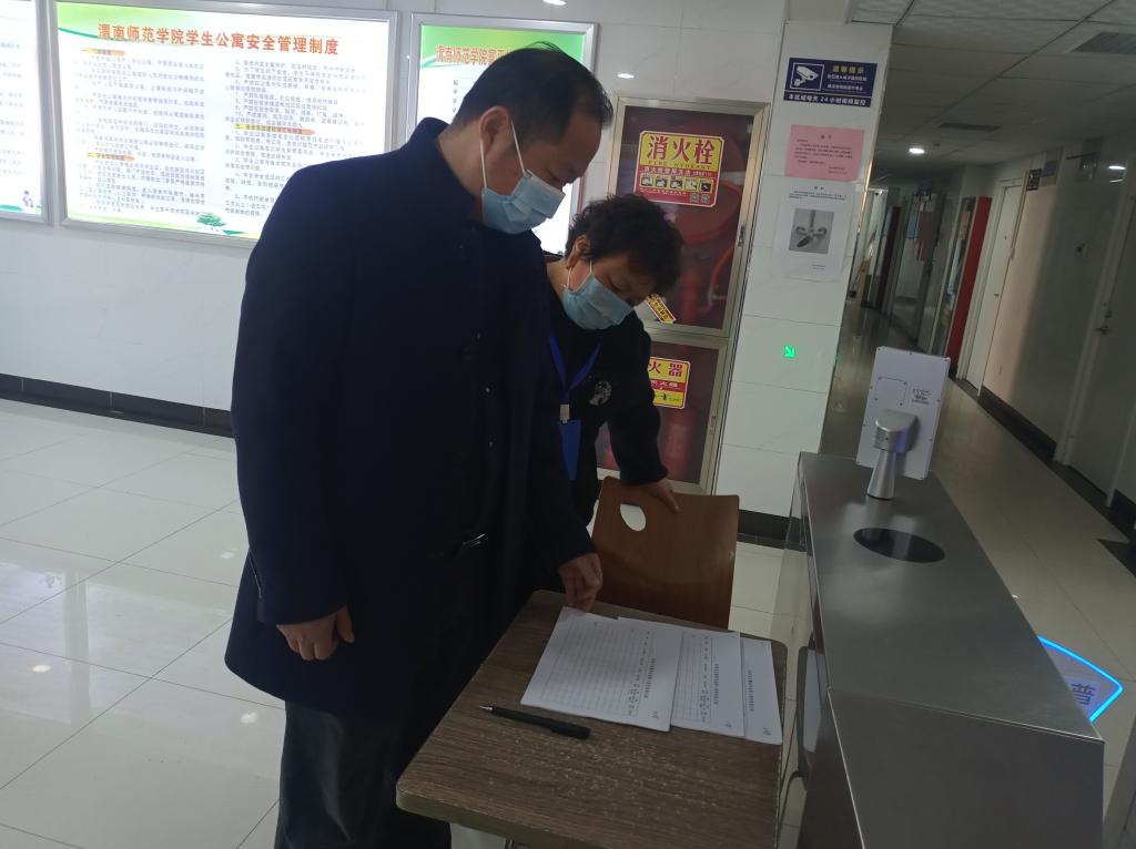 检查组一行人先后走访了富平校区南大门学生返校报到点、教学楼、餐厅、学生公寓、实训楼、教师公寓、医务室及商业网点,详细了解开学前准备工作的落实情况。在教学楼,校领导对教学设备及桌椅进行了现场检查,对教学楼内的安全设施配备提出了具体要求;在餐厅,详细检查了就餐座位、洗手消毒点及仓库卫生情况,强调要严格落实管理责任,为师生提供安全健康的就餐环境;在学生公寓,检查组仔细查看了公寓进出登记册及辅导员值班工作表,要求切实落实好学生宿舍的安全管理制度,要时刻优化管理体系,为学生提供舒适的学习、生活条件;在商业网点,详细了解商品的生产日期及日常用品储备情况,要求商业网点要按照学校有关要求和规定,确保师生日常所需物品的正常供应;在医务室,检查组详细查看了疫情物资储备情况,叮嘱工作人员要严格按照相关要求,切实做好疫情防控师生就医工作。