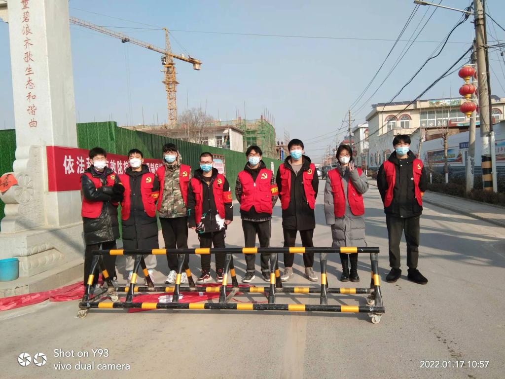 2021的年末令人难忘,正值寒假,全国疫情多点爆发,河南省防控形势严峻。靳中齐同学主动报名参加疫情防控志愿者活动,主要负责卡点车辆及人员进出的登记、防疫宣传、防控监测、信息录入等。他用自己的实际行动保卫着家乡人民的安全与健康,他的工作获得了群众的高度赞誉,赢得了新乡市凤泉区党委政府的高度认可。
