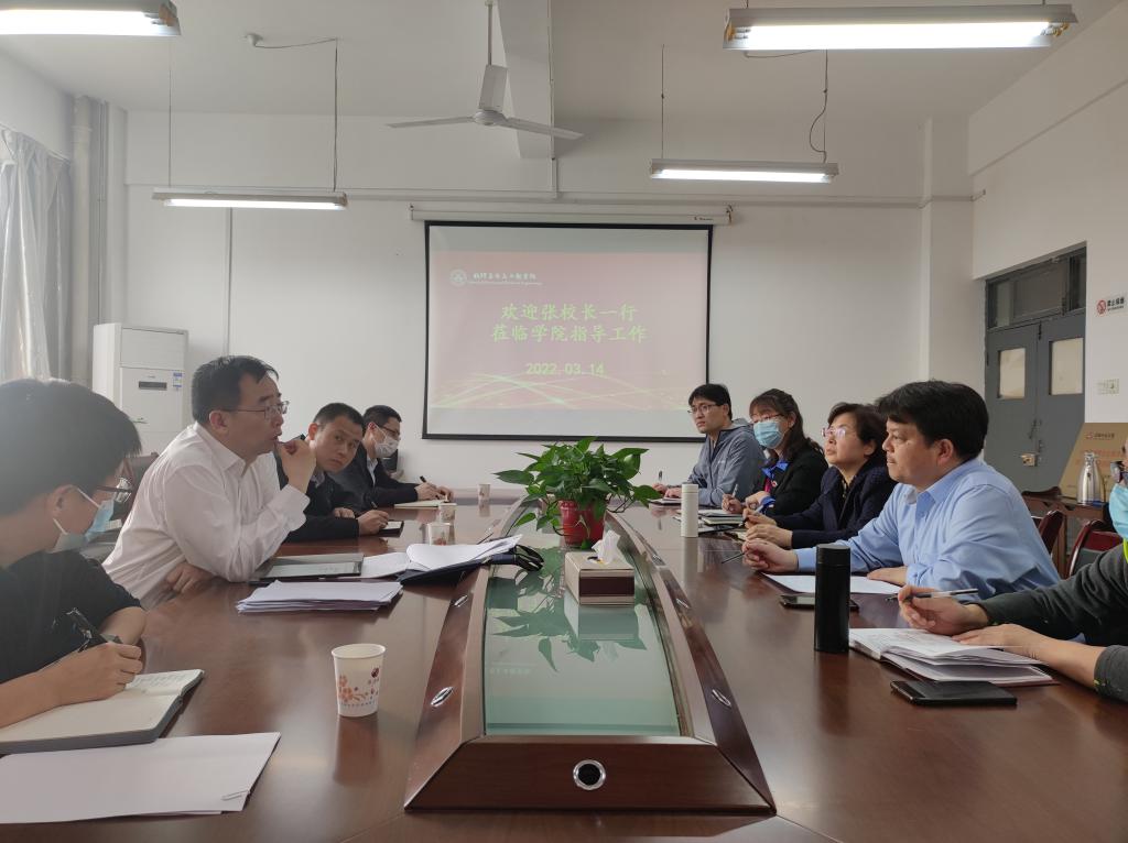 3月14日下午,校长张守华深入物理与电气工程学院调研指导工作。学院党政负责人等参加座谈会。
