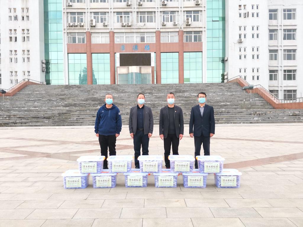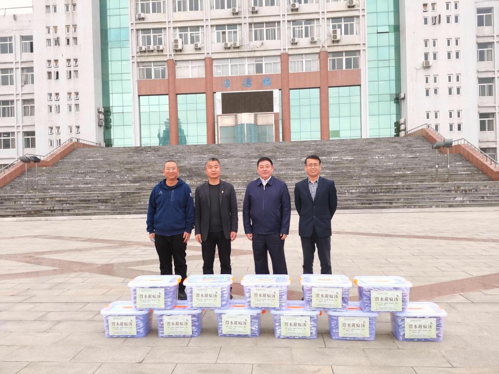 3月17日上午,受渭南职业技术学院党委书记华惠民、院长靳华锋委托,该校党政办公室主任雷建文、医学院副院长孟陆亮一行向纽约国际官网赠送抗疫中药汤剂“渭水避瘟汤”1000袋。纽约国际官网党委书记卓宇、党委副书记汪勇参加捐赠活动。