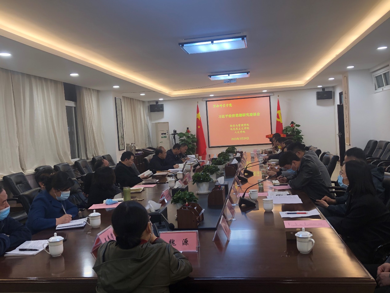 会上,经济与管理学院、马克思主义学院、人文学院、外国语学院的教授、博士教师代表围绕习近平经济思想主题,就自己的研究领域与研究计划进行交流与探讨。