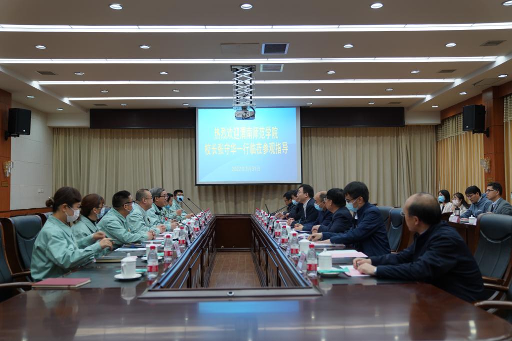 参观结束后,双方就校企合作进行了座谈交流。雷鸣介绍了公司发展历程、业务构成以及在职业教育、合作研发等方面的合作意向。他表示,双方合作将开创高科技企业与地方师范院校合作新模式,希望双方围绕合作细节尽快对接,抓紧落实。
