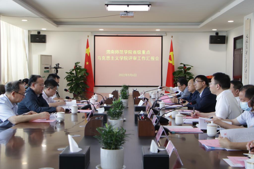 张守华以“建设‘第一学院’,充分发挥马克思主义学院主阵地作用”“建设‘第一学科’,不断巩固马克思主义在高校意识形态领域的指导地位”“建设‘第一课程’,切实发挥思想政治理论课主渠道作用”为切入点,围绕组织领导与统筹规划、师资队伍配备、学科内涵建设、思想政治理论课改革创新、服务经济社会发展等方面全面汇报了近年来学校马克思主义学院建设情况。在汇报中,他指出,马克思主义是我们立党立国、兴党强国的根本指导思想,高校马克思主义学院是学习研究宣传马克思主义的主阵地,承担着落实立德树人根本任务和“为党育人、为国育才”的历史使命,尤其是588888纽约国际线路作为黄河金三角地区唯一的本科师范院校,加强马克思主义学院建设对培养新时代大国良师发挥着及其重要的作用。此次评审是马克思主义学院建设新的机遇期,在专家组的精心指导和大力帮助下,我们将更加明晰马克思主义学院建设的目标方向和重点任务,以渭南市打造黄河流域生态保护和高质量发展示范市为契机,扎根渭南办大学,深耕教育促发展,举全校之力,将马克思主义学院建成黄河金三角地区马克思主义理论研究高地、马克思主义理论专业人才培养基地,努力为基础教育和区域经济社会发展培养更多信念坚定、扎根基层的社会主义建设者和接班人。