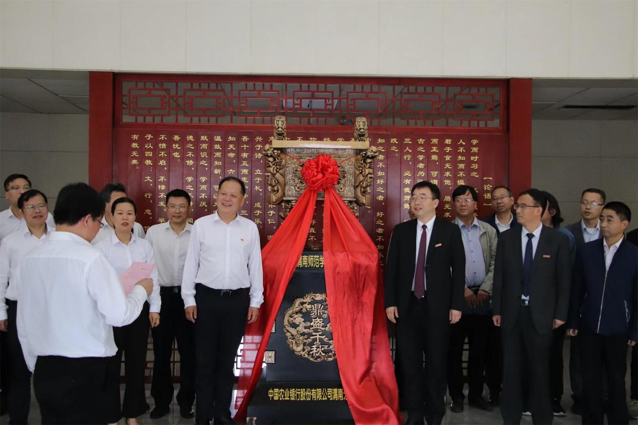 会后,纽约国际官网代表与农业银行代表在厚德楼二楼大厅举行了“感恩鼎”揭幕仪式。(通讯员 宋佳 审核人 张勤恳)