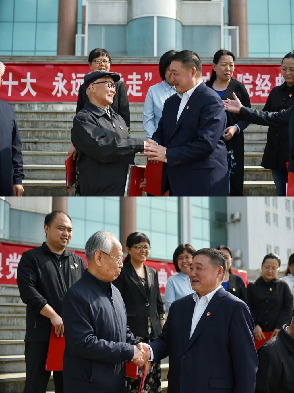 启动仪式结束后,学校领导和人文学院老教授段国超、严安政亲切交谈。
