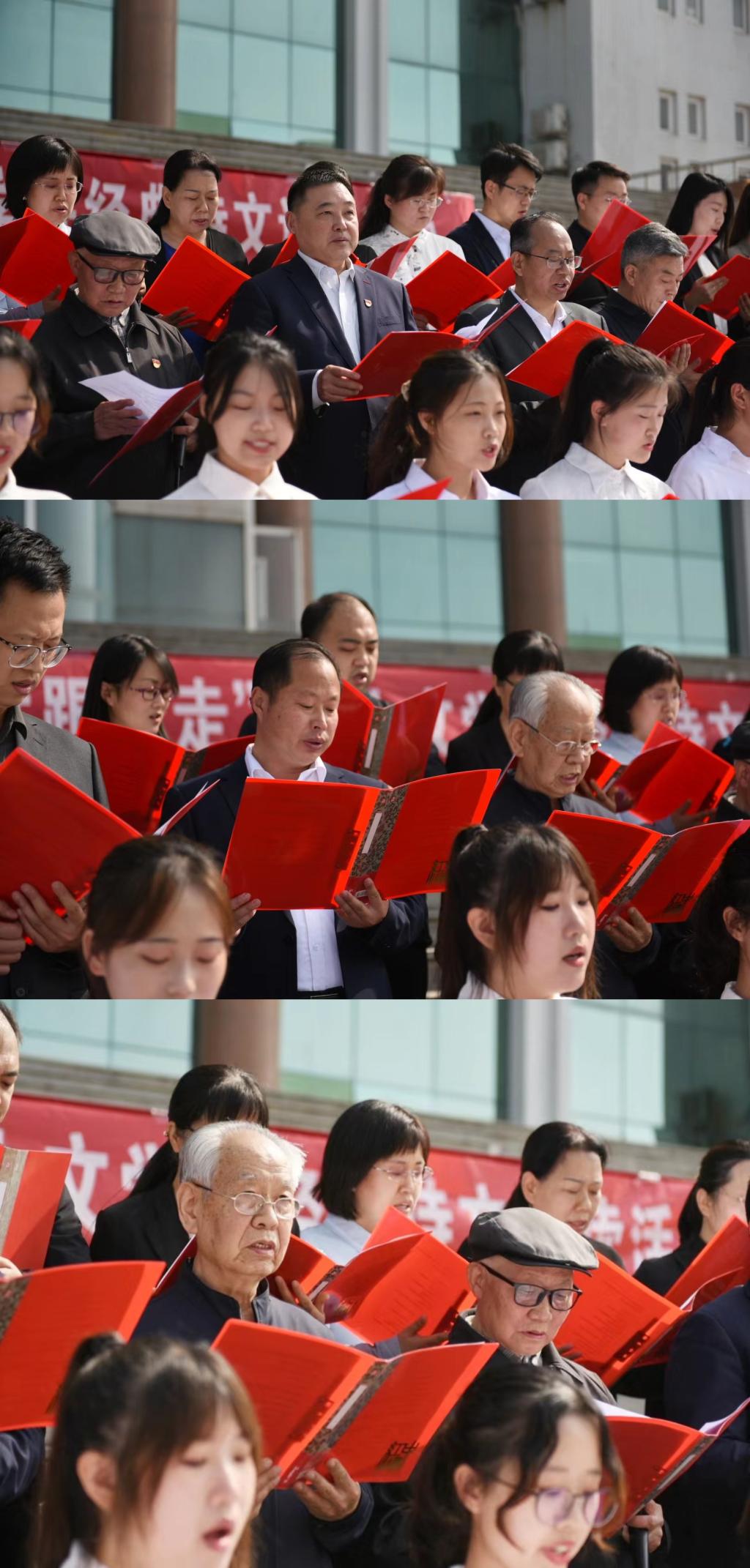 在朗诵团的带领下,与会师生饱含深情集体诵读了陕西当代作家李臻的作品《中国声音》。在诵读中体味中国声音是走向世界的声音,是和宇宙交汇的人类声音。在诵读中坚定理想信念,汲取智慧和继续前行的力量。