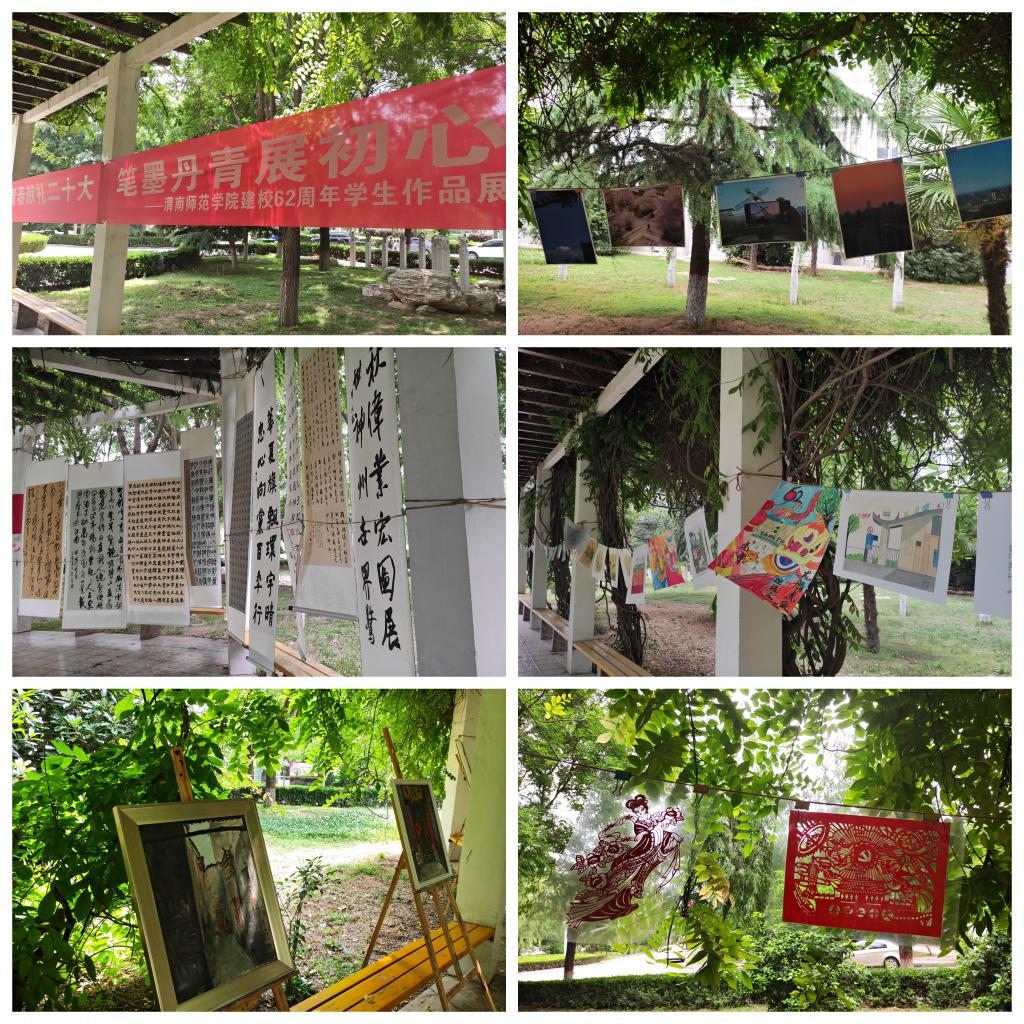 5月9日至5月13日,在厚德楼南侧紫藤长亭内,学生会、社团管理中心承办“青春献礼二十大,笔墨丹青展初心”学生作品展。作品展共分为绘画、书法、剪纸、摄影四个展区,共展出大学生手绘协会、书法协会、剪纸协会、摄影协会作品90余份,作品既有天安门的雄伟壮观、有厚德楼前的春光明媚,有书法作品的行云流水,又有绘画作品的别具一格。紫藤长亭内,师生驻足观看,对一幅幅优秀作品点评夸赞。