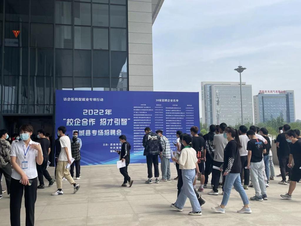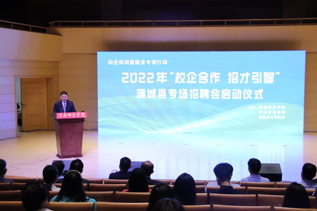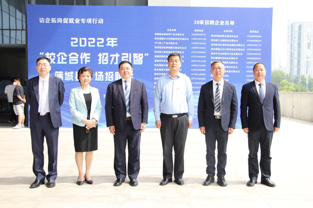 5月18日上午,学校与蒲城县委县政府在云帆体育馆联合举办2022年“校企合作 招才引智”蒲城县专场招聘会启动仪式。