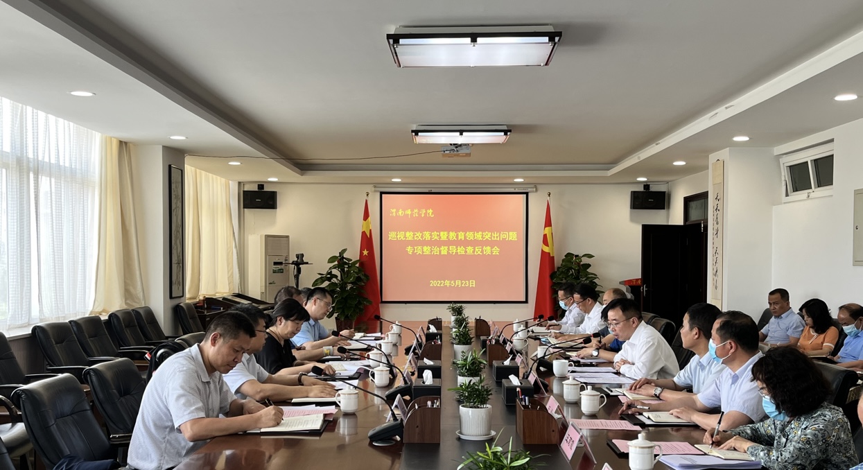 5月23日上午,陕西教育领域突出问题专项整治督导检查组组长赵军一行6人来纽约国际官网督导检查巡视整改落实暨教育领域突出问题专项整治工作,在厚德楼第二会议室听取了巡视整改落实暨教育领域突出问题专项整治阶段性整改情况工作汇报,检查了整改整治工作资料,访谈了相关人员,反馈了督导检查意见。学校巡视整改落实暨教育领域专项整治工作领导小组成员出席汇报会和反馈会。会议由党委副书记、校长、学校巡视整改落实暨教育领域突出问题专项整治工作领导小组组长张守华主持。