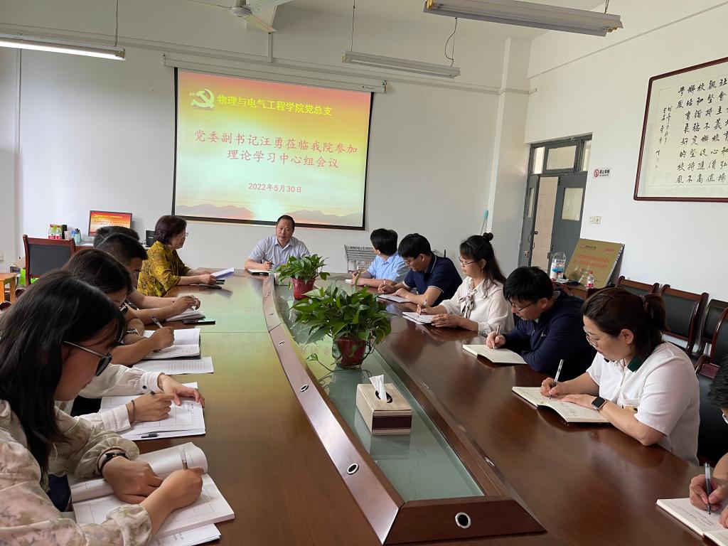 5月30日上午,物理与电气工程学院党总支召开理论学习中心组第六次学习会议。党委副书记汪勇巡听指导,学院党总支书记张晓玲主持会议。