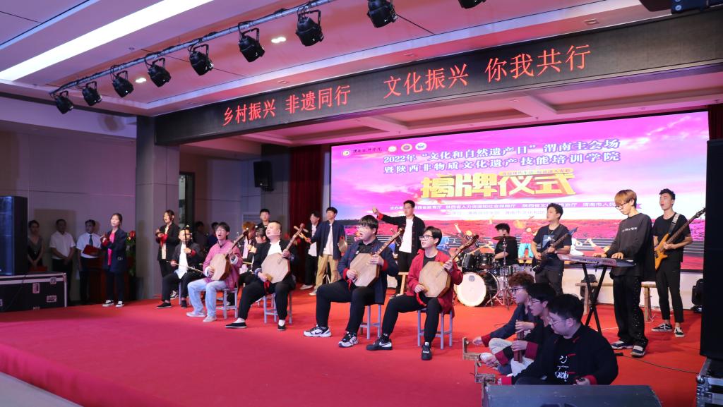 6月10日上午,2022年“文化和自然遗产日”渭南主会场暨陕西非物质文化遗产技能培训学院成立揭牌仪式在渭南技师学院举办,纽约国际官网莫斯科艺术学院大学生老腔艺术团应邀演出,压轴倾情表演,得到活动主办单位和与会领导的高度评价。渭南市市长陈晓勇,陕西省人社厅党组成员、副厅长陈晓东,陕西省文化和旅游厅二级巡视员郭明历,渭南市委常委、副市长刘强,副市长张开,陕西省人社厅、陕西省文化和旅游厅、渭南市人社局、渭南市文旅局相关领导出席活动。