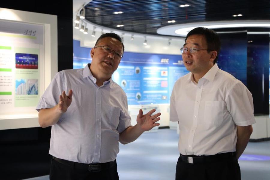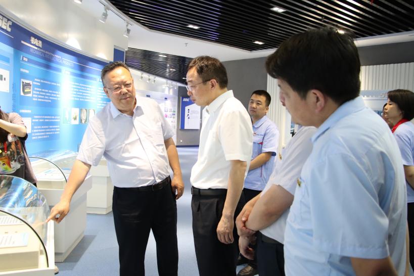 张守华一行在陕西电子信息集团有限公司党委书记、董事长燕林豹的陪同下,参观走访陕西电子信息集团展示厅,深入了解企业产品、企业文化以及电子产品用途、电子产品创新方面有关情况。
