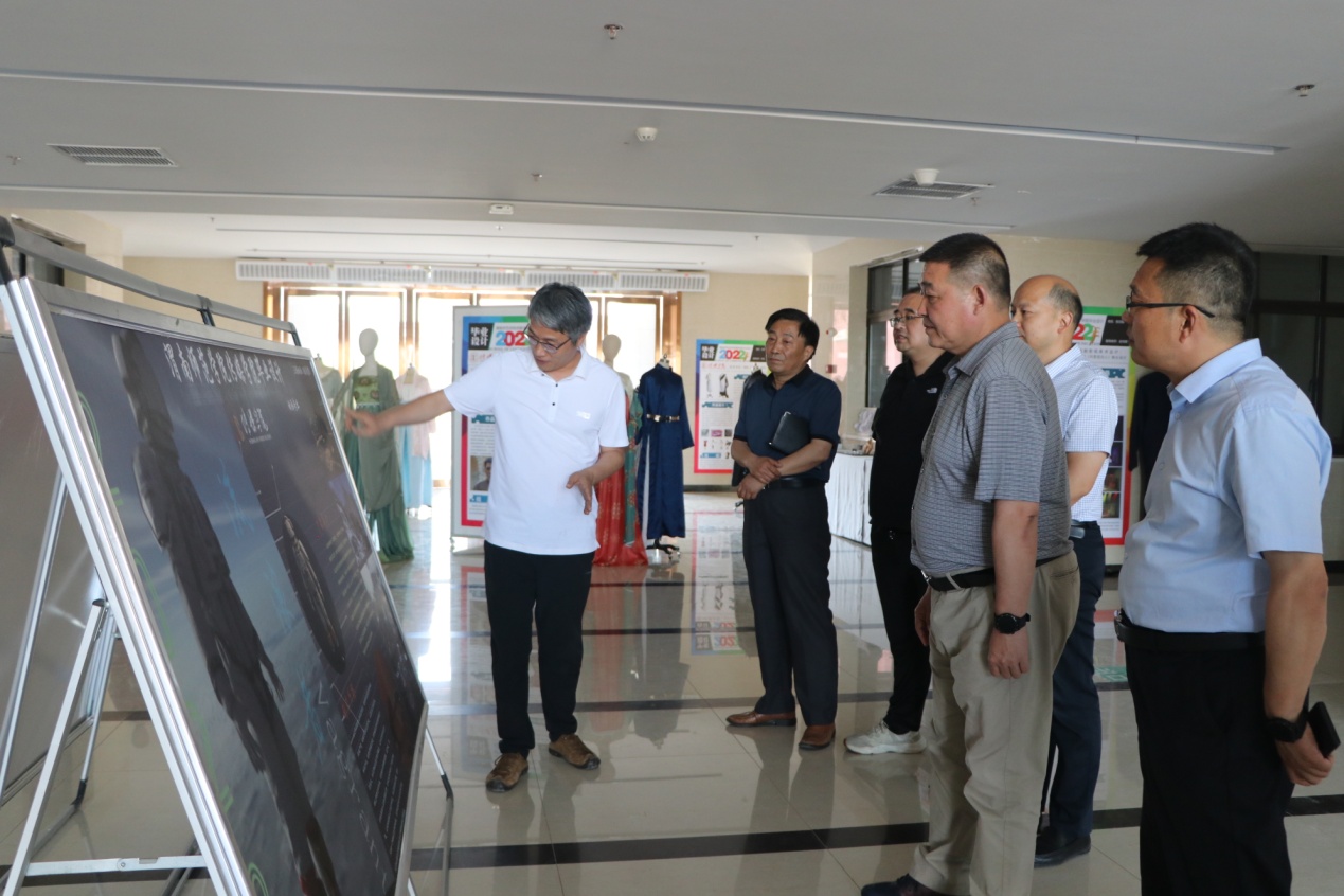 6月15日下午,党委书记卓宇到富平校区指导传媒学院喜迎二十大2022届毕业设计作品展。