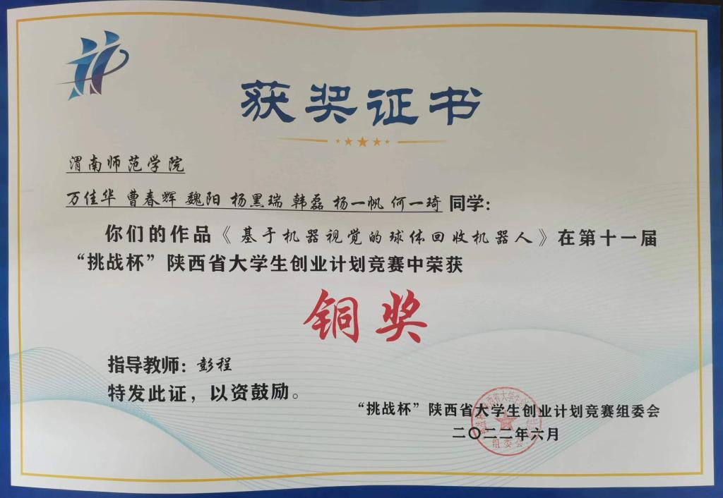 纽约国际官网团委通过前期备赛,共征集130份作品,经过校级评审,共推荐了13份作品参赛。其中由经济与管理学院教师黄东梅指导的王雨露、蔡伟、吴越、陈景洪、叶友沛同学的作品《餐厅后厨共享可视化》和物理与电气工程学院教师彭程指导的万佳华、曹春辉、魏阳、杨黑瑞、韩磊、杨一帆、何一琦同学的作品《基于机器视觉的球体回收机器人》分别获得铜奖。