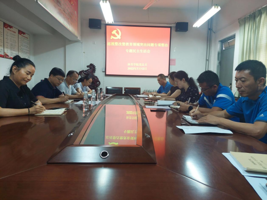 7月12日下午,体育学院党总支召开处级领导干部巡视整改暨教育领域突出问题专项整治专题民主生活会。党委委员、副校长常青林参加并指导会议,督导组成员李望、朱芳转、武楠参加会议。会议由学院党总支书记田耿辉主持,学院全体处级领导干部参加会议。