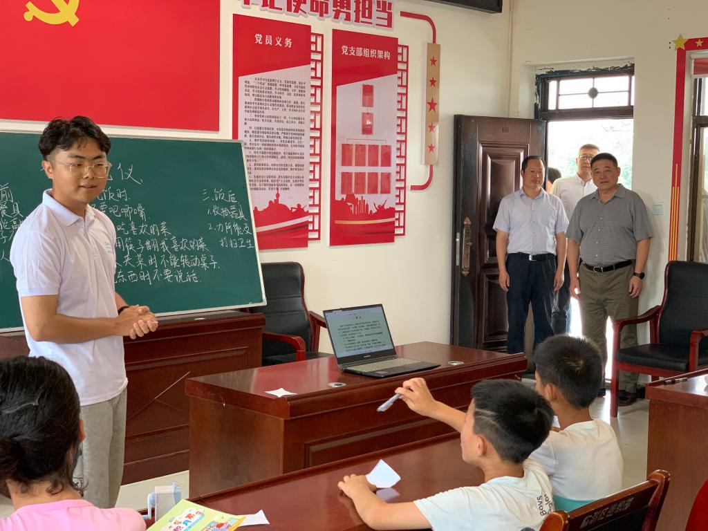7月12日下午,党委书记卓宇、党委副书记汪勇一行到临渭区阎村镇三李村看望慰问外国语学院暑期社会实践团队师生并指导支教实践工作。