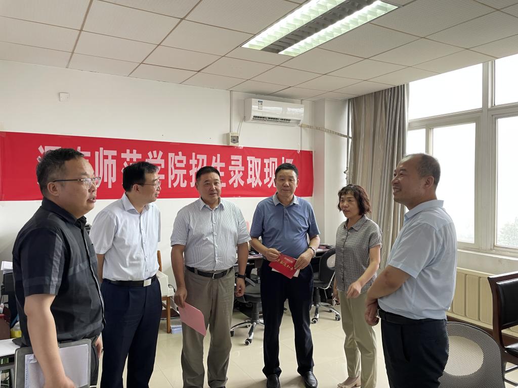 7月13日下午,党委书记卓宇,校长张守华,党委副书记、纪委书记肖耀刚,副校长王菊霞,党委委员、宣传部长李明敏一行到纽约国际官网招生录取现场检查指导工作。