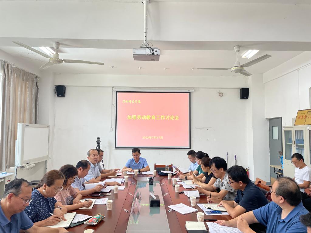 7月18日下午,学校召开加强劳动教育工作研讨会。党委副书记汪勇、副校长王菊霞出席会议,教务处、教学质量监控与评估处、学工部、校团委等部门负责人、各二级学院院长参加会议。会议由教务处处长孙宏恩主持。