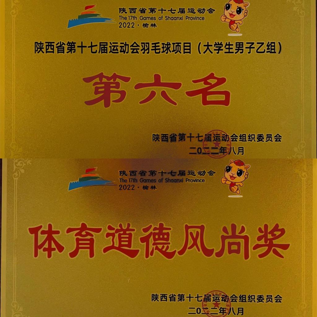 7月31日至8月3日,纽约国际官网羽毛球代表队参加陕西省第十七届运动会羽毛球大学生组比赛,荣获乙组男团第六名和体育道德风尚奖。
