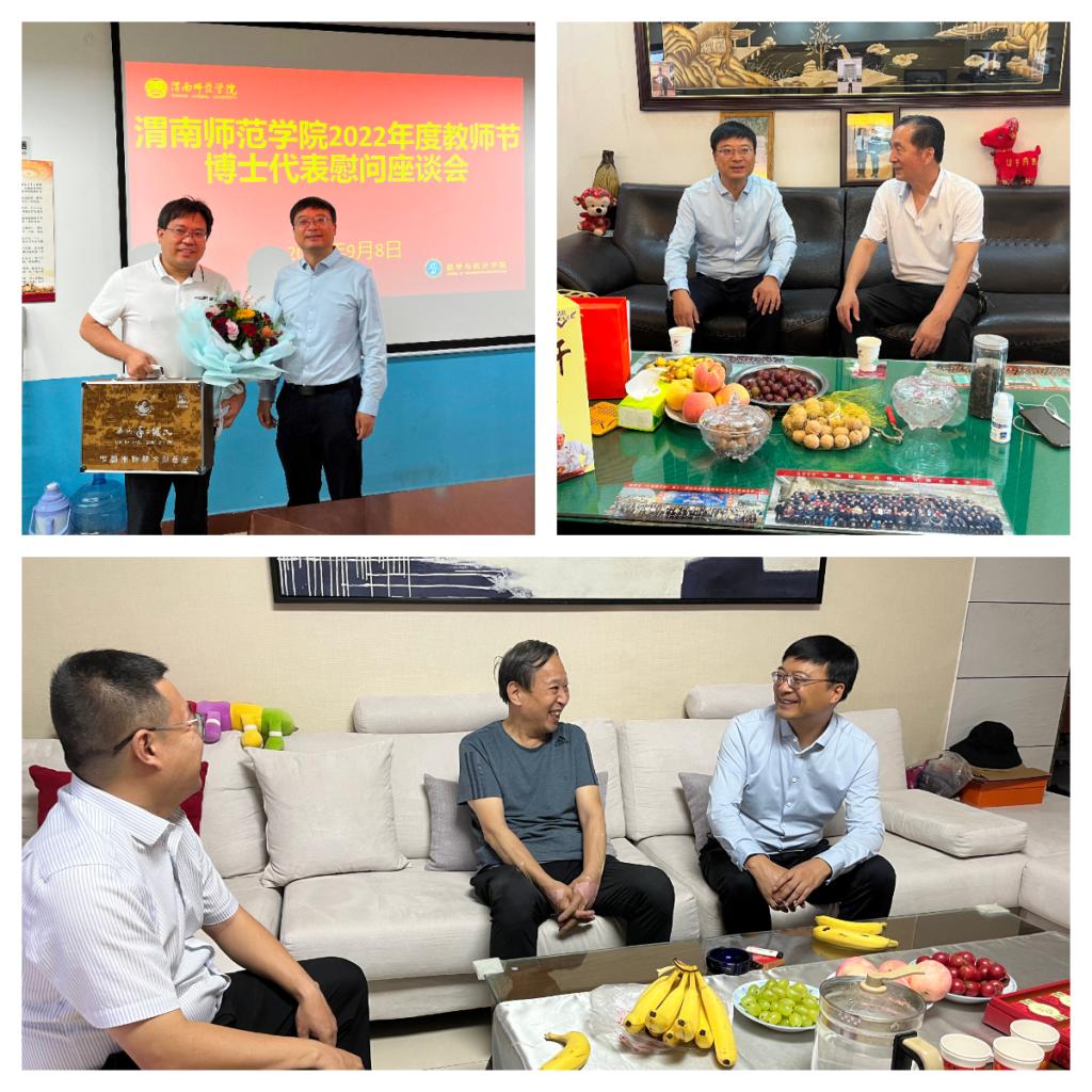在第38个教师节来临之际,学校组织开展了教师节慰问活动。校长、党委副书记张守华,党委副书记、纪委书记肖耀刚,党委副书记韩小卫、汪勇、袁亮,党委委员、副校长卢爱刚、王菊霞、常青林、曹强,党委委员凌朝栋、李明敏分别带队走访慰问了部分退休老领导老同志以及教师代表,感谢各位老师为学校建设和发展所做出的贡献与努力,并代表学校向他们及广大教职员工送上了诚挚问候与节日祝福。