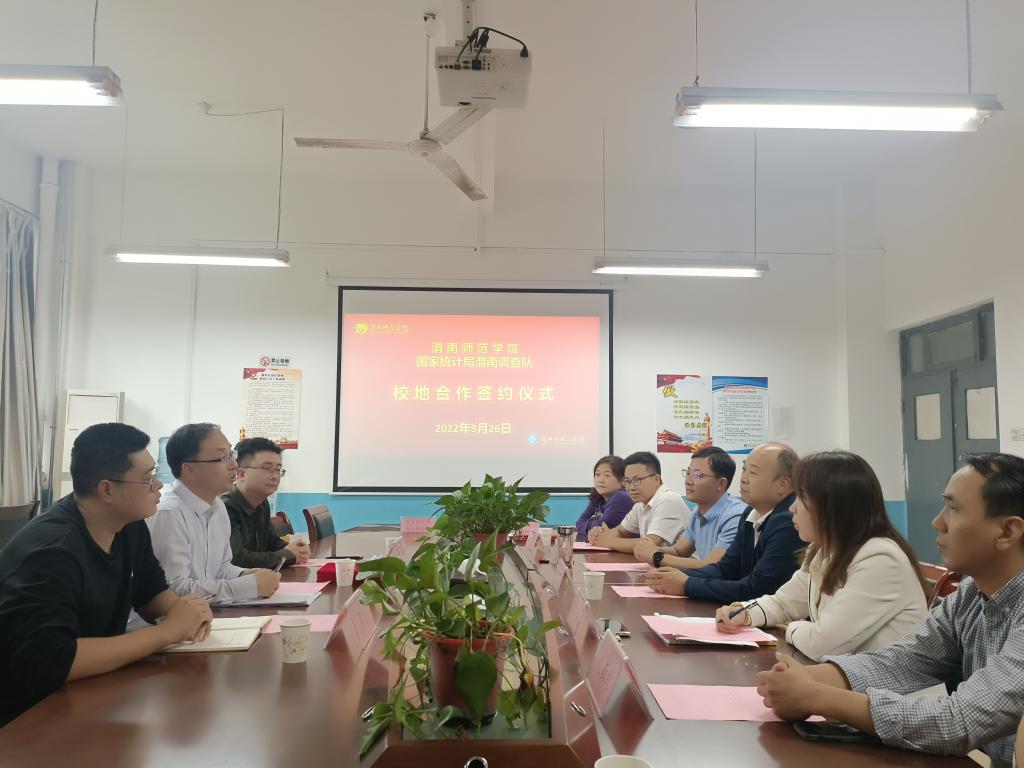 揭牌仪式上,陈斌从师资队伍、专业开设、获奖荣誉等方面介绍了学院的基本情况,更加增进相互了解,希望和国家统计局渭南调查队加强校地合作,发挥高校人才服务地方的作用,以此为契机,搭建平台,推向校地合作更进一步。