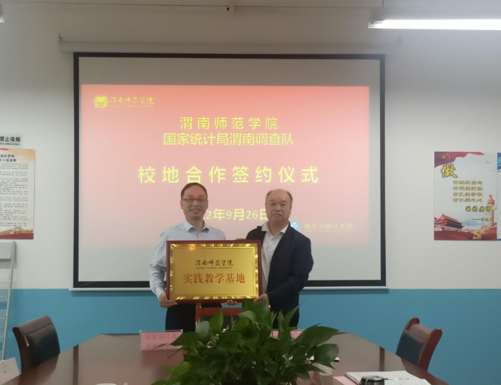 双方举行人员相互聘用,卢爱刚为国家统计局渭南调查队王力、谢延斌、梁杰发放聘书;马金阳为纽约国际官网数学与统计学院刘炳全、董晓萌、李凤发放聘书。马金阳和卢爱刚共同为实践教学基地揭牌。