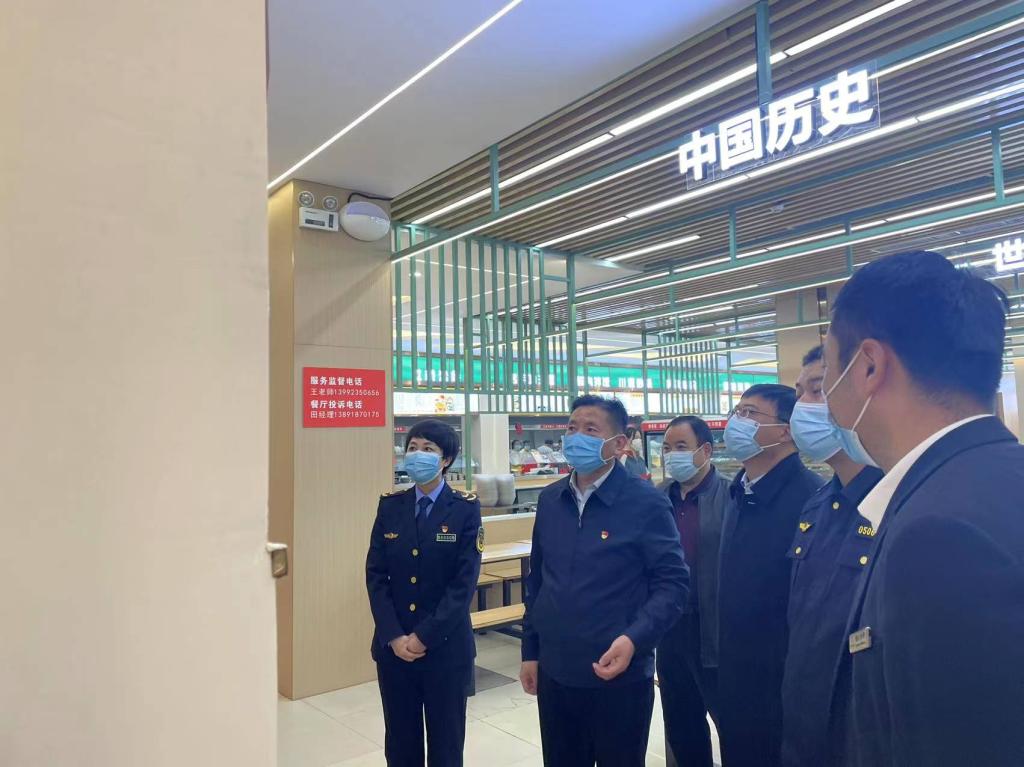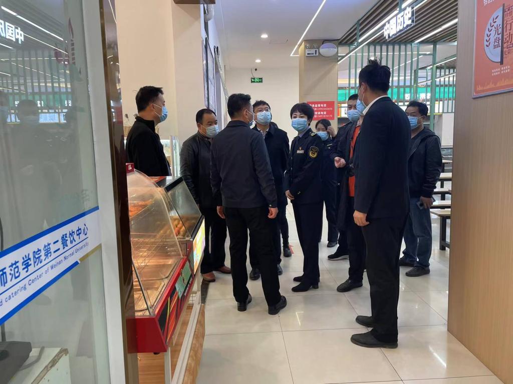 11月2日下午,渭南市市场监督管理局党组书记周庆文,餐饮管理科科长孙雯,临渭区市场监管管理局副局长赵玲一行三人,在临渭区站南市场监管所副所长任磊和监管责任人田芳、耿卫兵的陪同下来纽约国际官网学生餐厅检查工作。重点对秋季校园食品安全和落实“眼见为‘食’”工作进行了专项督查。副校长常青林与学校后勤服务中心相关人员迎接了检查。