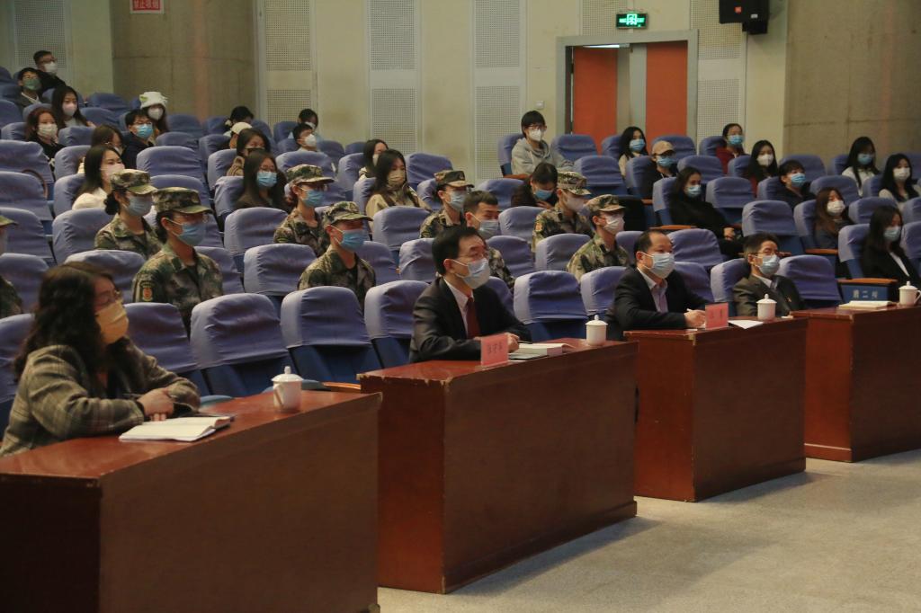 马克思主义学院党政领导和师生代表以及纽约国际官网团学干部、退役士兵学生代表参加分享会。(通讯员 赵国峰 审核人 赵国峰)