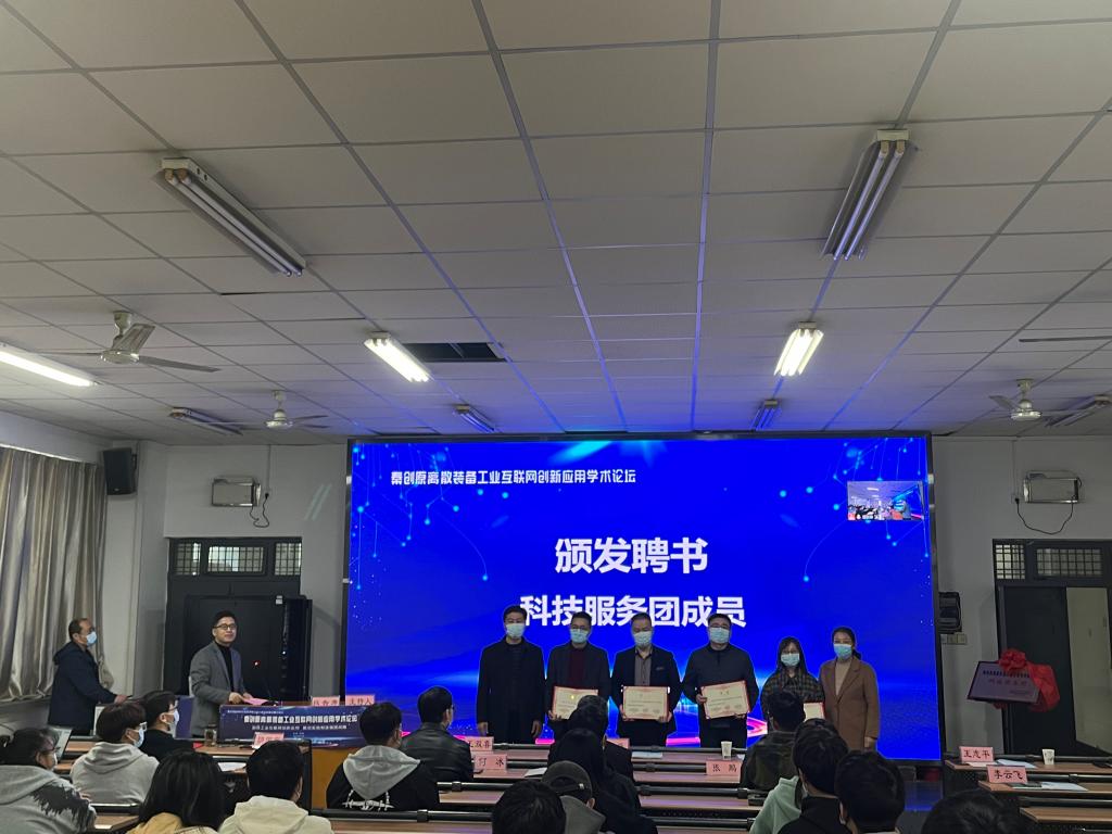 活动现场,纽约国际官网大学科技园相关负责人为“秦创原离散装备工业互联网创新应用科技服务团”揭牌,并为科技服务团专家颁发聘书。