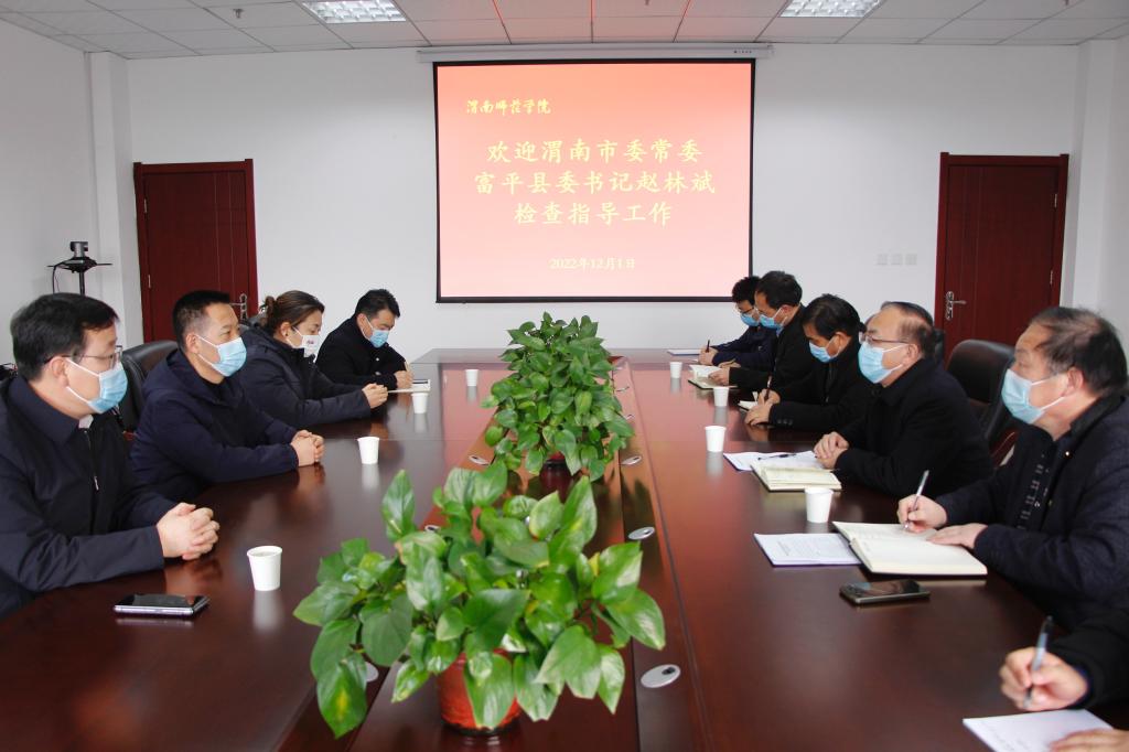 12月1日,渭南市委常委、富平县委书记赵林斌,富平县委常委、副县长贾丹,县委常委、县委办主任黎忠利,县教育局局长雷建庄等一行到学校富平校区检查指导工作并召开座谈会。党委副书记袁亮,富平校区管委会、后勤服务中心等单位负责人陪同并参加座谈。