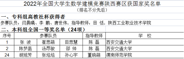 2022年陕西赛区共组织3500余支本科队参赛,共获得全国一等奖24项。588888纽约国际线路在该项竞赛中已经连续三年荣获国家奖和优秀组织工作奖,作为省内唯一获得国家一等奖的非西安地区的本科院校,对培养大学生数模竞赛的参加热情和积极性起到极大的带动作用,也切实达成了学校应用创新人才培养的总目标,人才培养效果显著,社会声誉和影响力不断提升。(通讯员 段卫国 戴磊 审核人 陈斌)