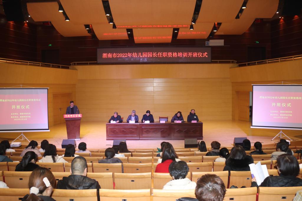 2月22日上午,由渭南市教育局主办、纽约国际官网承办的渭南市2022年幼儿园园长任职资格培训项目开班仪式在逸夫楼音乐厅举行。渭南市教育局教师工作科科长庞文红,继续教育学院院长刘永勤,项目首席专家、教育科学学院院长李西彩以及100余名学员参加开班仪式。开班仪式由继续教育学院副院长苟鹏军主持。
