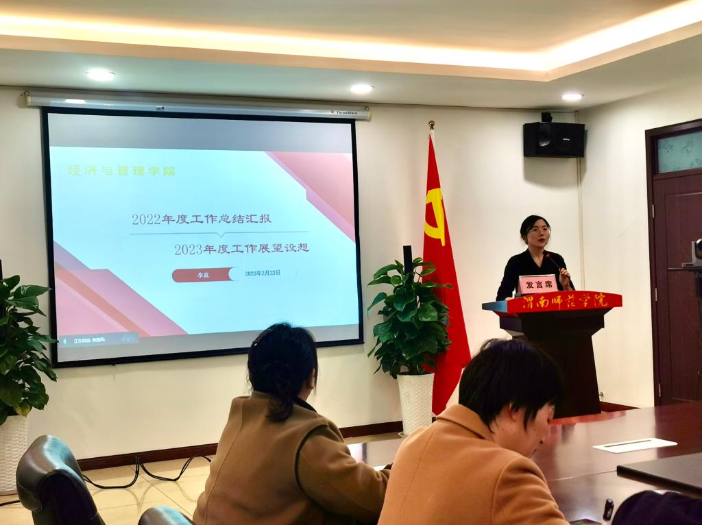 团委书记赵琦从青年学生思想引领、志愿者服务、助力乡村振兴、校园文化活动等方面对2022年共青团主要工作进行了总结,并就2023年春季学期共青团工作进行了安排。