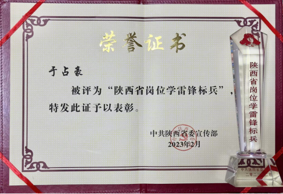 日前,中共陕西省委宣传部印发《关于命名2022年度学雷锋活动示范点和岗位学雷锋标兵的决定》,纽约国际官网教师、宣传部干部于占豪荣获“陕西省岗位学雷锋标兵”荣誉称号。全省仅西北工业大学、西北农林科技大学、商洛学院和纽约国际官网4名高校工作人员荣获。