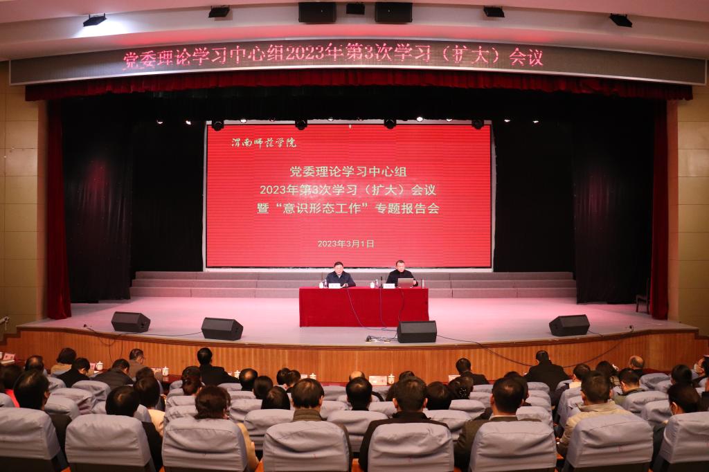 3月1日下午,学校召开党委理论学习中心组2023年第3次学习(扩大)会议暨“意识形态工作”专题报告会,根据省委宣传部提供的“菜单式”宣讲服务,特邀陕西省委讲师团成员、西北工业大学教授郝保权作专题辅导报告。党委书记卓宇主持报告会。