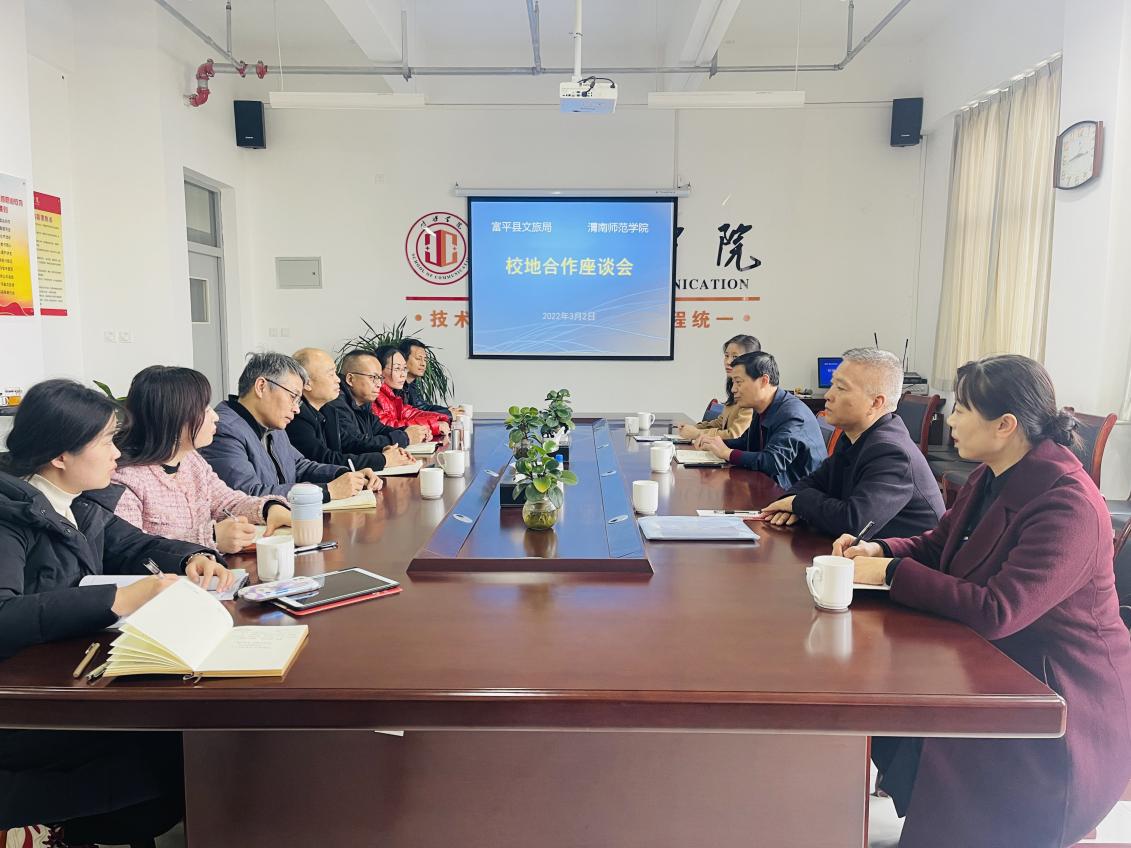 3月2日下午,富平县文旅局局长卢战强一行来纽约国际官网富平校区洽谈校地合作事宜,副校长卢爱刚主持座谈会并讲话。
