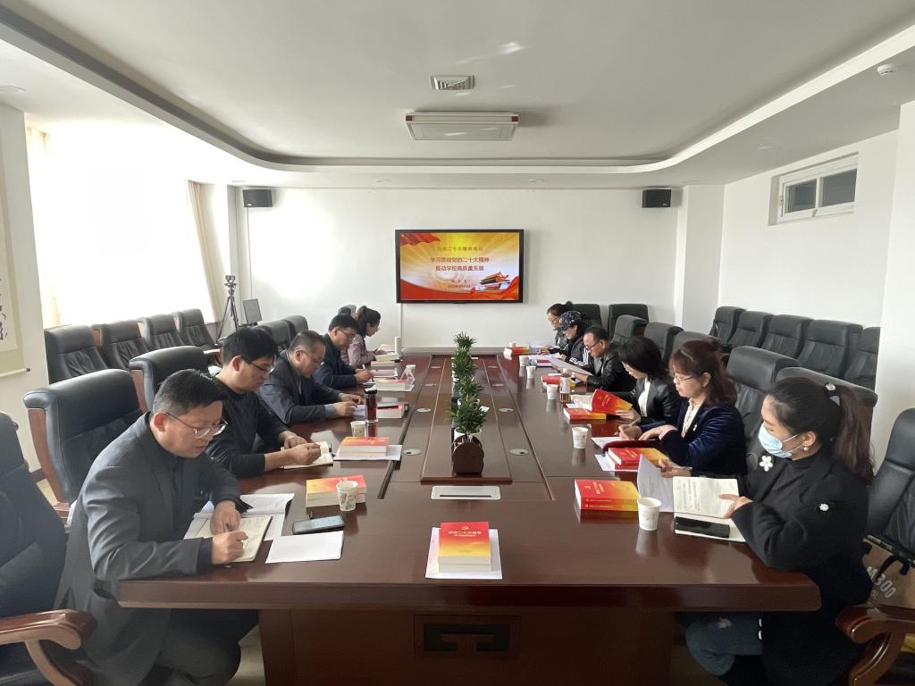 会上,韩小卫作题为《学习贯彻党的二十大精神推动学校高质量发展》的宣讲报告。报告全面介绍了党的二十大召开的基本情况,从党的二十大的主题、主要成果,学习贯彻二十大精神的要点,党的二十大对教育工作的部署要求,对统战工作的部署要求,以及用党的二十大精神推动学校高质量发展等方面对党的二十大精神进行了深入全面的宣讲。